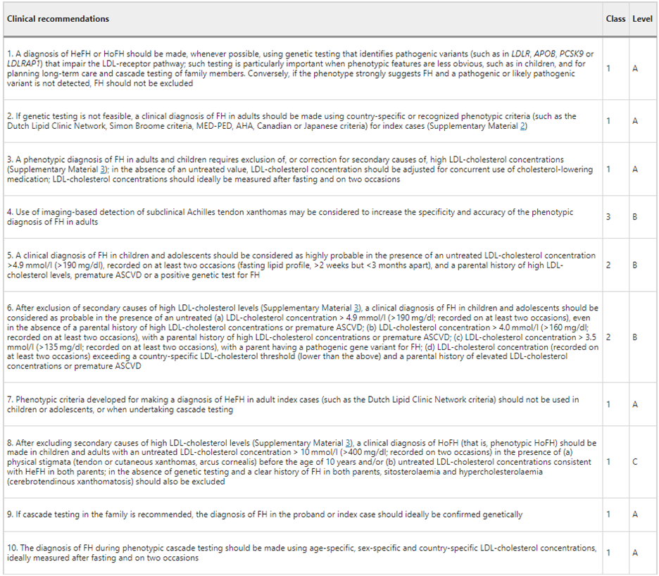 In 2018, the CCS released a position statement on FH. With regards to genetic testing, screening and diagnosis of FH, the CCS included the following relevant recommendations: